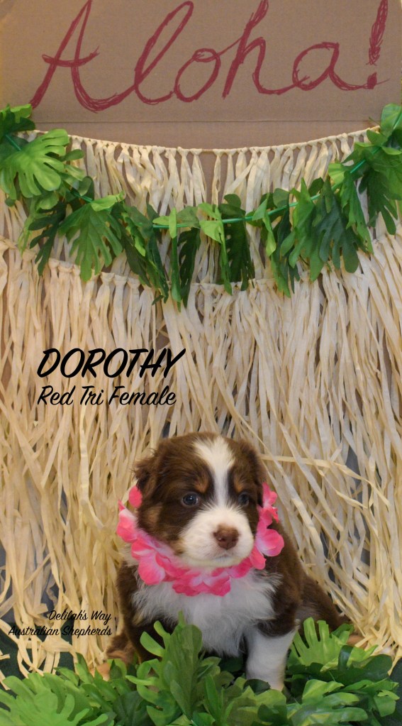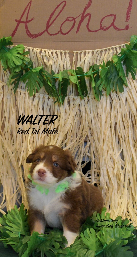 In this litter we were lucky to have 2 males (1 red tri and 1 red merle) and 3 females (1 red tri, 1 blue merle, and 1 red merle).